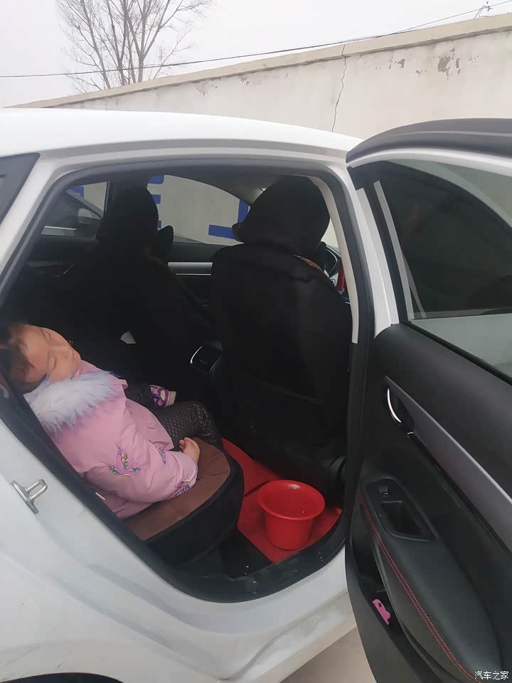 孩子睡得好香,要不是宽敞的乘坐空间,估计很没办法满足。(忽略孩子的尿盆,哈哈)