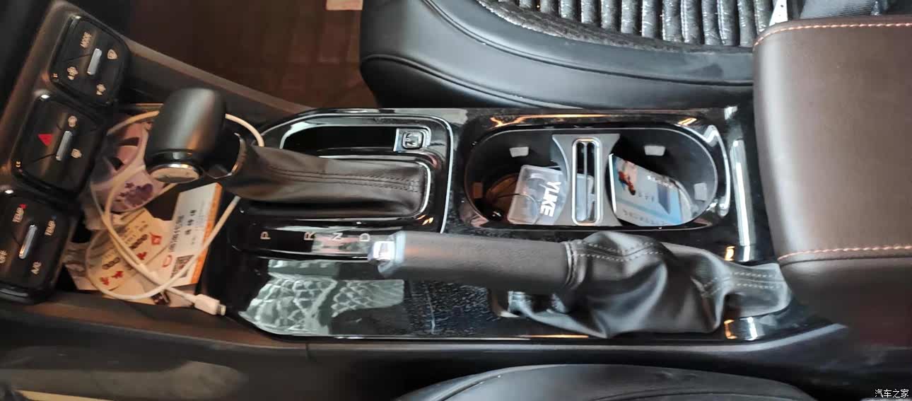 手刹旁边的储物格被放的满满的,这就是车里日常的样子,家庭用车以舒适为主。