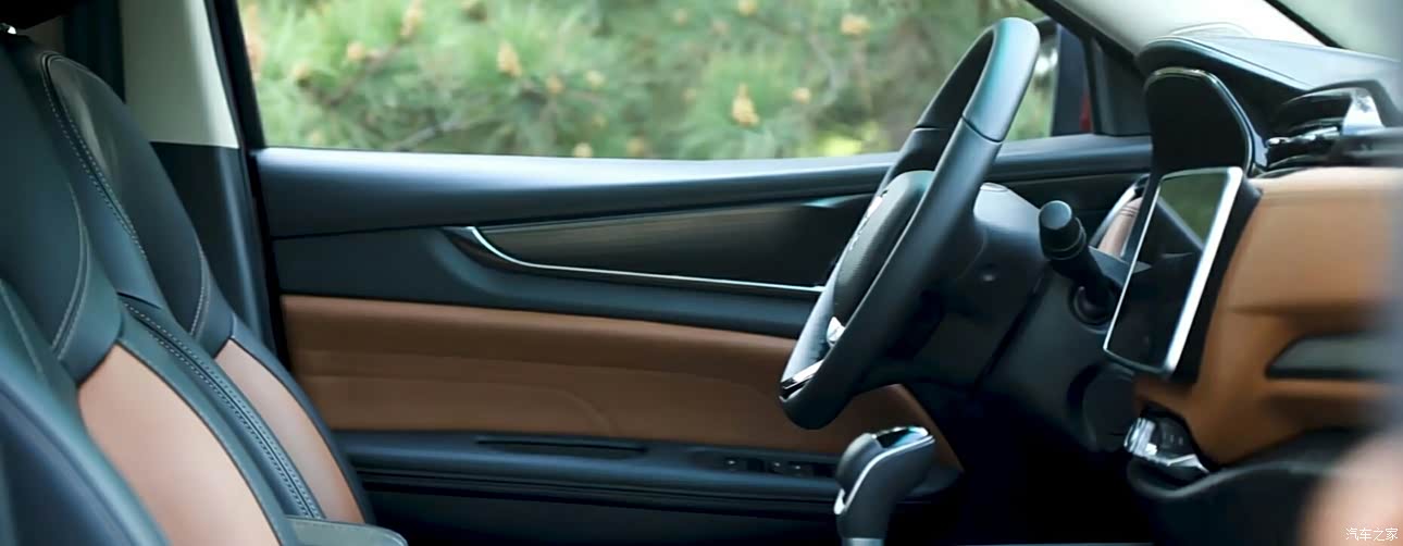 内饰还是挺有高档感的,真皮的方向盘和皮质的座椅,都让车内提高了豪华感,中控液晶显示屏有十英寸大,而且还有语音识别功能,打电话开天窗,开空调都可以用,这一点很棒。