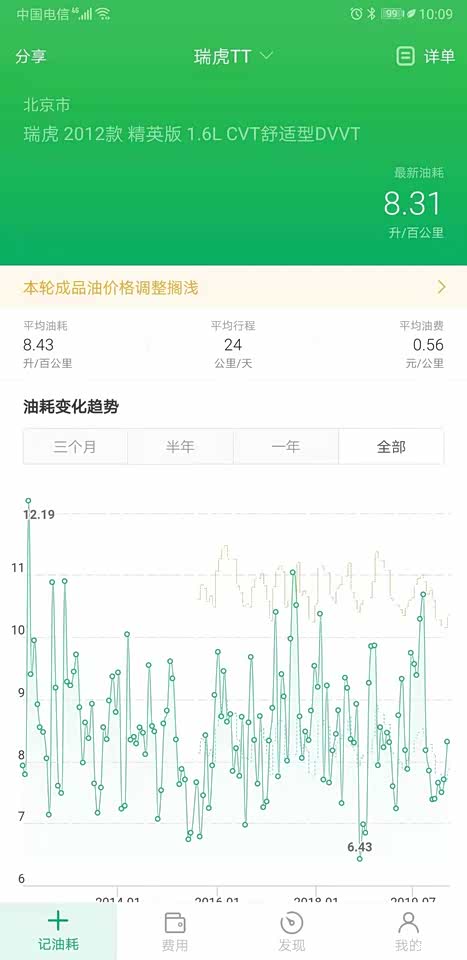 综合油耗8.4。时速80公里左右最省油,跑高速时速120公里左右时候油耗大概8.5。