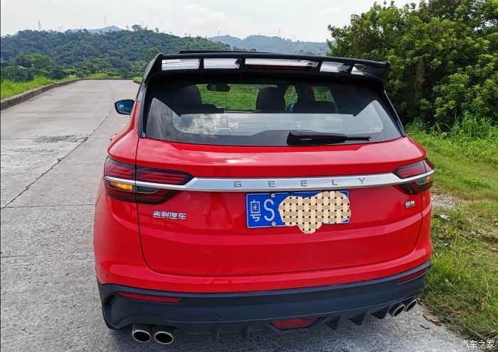 缤越的外观时尚前卫,非常具有运动的气息,中网的黑色前铲还是很好看的,吉利家族化的设计,尾部加了个运动尾翼,4出排气管,轿跑化的风格,开上街你就是这条街上最靓的仔。
