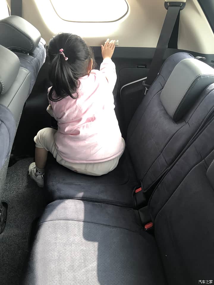 女儿坐进第三排,行动非常自如。哈哈,这个第三排非你莫属了。