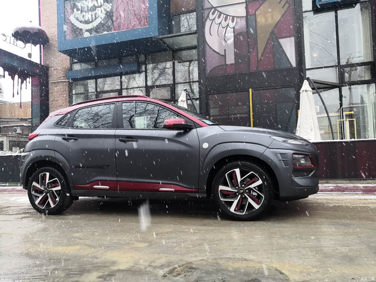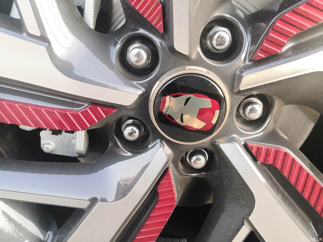 外观,就是奔着这个外观设计来的,整个车身都透露出钢铁侠元素;哑光灰色的车身涂装,红色涂装进气口,整车辨识度很高;钢铁侠头像无处不在,前翼子板、轮毂、座椅、车顶等等,侧身、后视镜、大灯等等红色元素,也是标识性元素。
