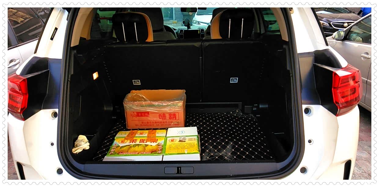 也非常宽敞,空间挺大的。后备箱整体挺宽敞的。感觉空间挺大,挺满意的,可以储存两个大行李箱。后排座也可以。比较满意,上次回老家拉大白菜,忘了拍几张照片,放得很多。容量绝对可以挺满意,储物空间充足
