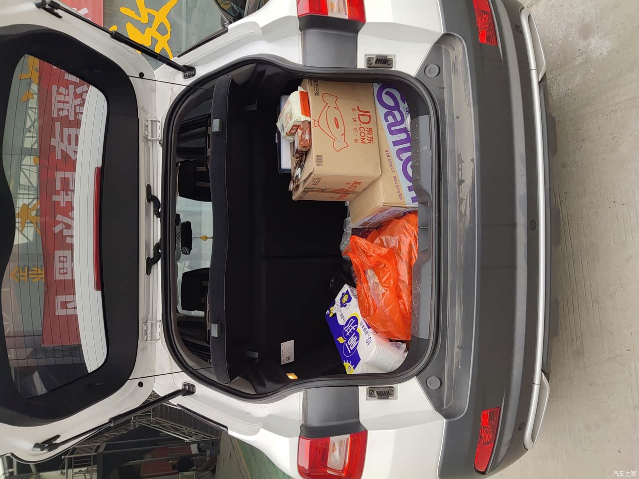 后备箱的空间也不小,外观看上去以为没有后背箱呢,打开却是惊喜,前排座椅还可以放倒,就是放个全自动洗衣