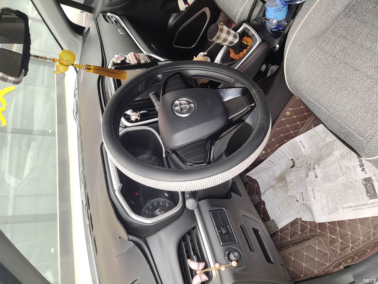全系皮质座椅,电子助力方向盘,加装了个10.4寸,中控屏,导航,倒车影响,行车记录仪全都有了,功能强大,和高配就差天窗了