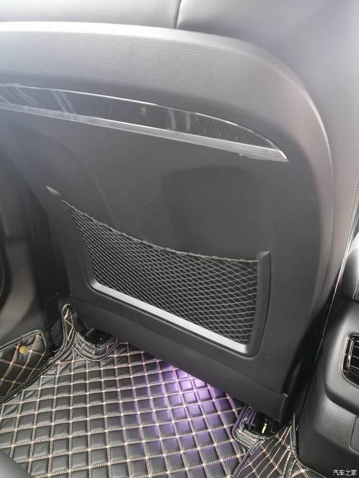 手套箱放些说明书什么的完全够,后排扶手放下来还可以弹开两个杯座--估计很用不上。前排座椅后面的纳物网很紧,装不了多少东西,网上重新买了个皮质的安上。最不满意的,是前排没有专门用来放手机的地方,这点实在应该改进