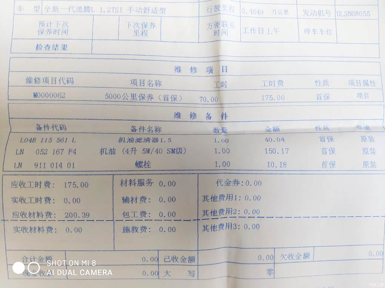 首保更换了机油机滤,简单做了车辆检查,检查了下有无渗漏
