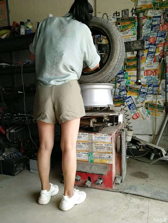 维修店修补轮胎的师傅居然是个小姐姐