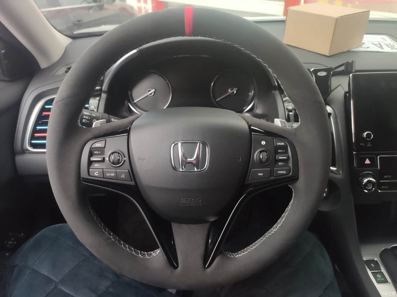 内饰第一眼没什么惊艳的,没有其他车型上亮闪闪的装饰,风格比较沉稳,是大厂的感觉,宜商宜家。按键用的都还顺手,后排四个出风口,加可以独立调节温度,还是上档次的,这点很满意。就是扶手黑色的塑料,还有大屏幕都比较容易刮花。冬天手比较干,屏幕反光能看到细细的划痕,拼多多买了一个20块的贴膜贴上。