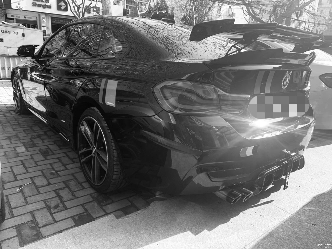 不用多说轿跑的外形,低趴的身躯,俗话说一低遮百丑,果不其然,最关键还是一款漂洋过海来中国的德国进口宝马,无框车门,小众车型,逐渐变蓝的碳黑色,绝对骚气的mad碳纤维大尾翼,超大的掀背空间,加上宝马的操控,指哪打哪的精准感觉,最关键一点他是现车啊,4月份到港,五月份直接4儿子店大堂提车,当时进门看到卧槽4系,不是跑车,于是话没多少,启动发动机的一瞬间,我的心就已经被他俘获了,当天全款搞定,犹豫本人喜欢开快车,所以必须上高功率啊,加上改装,现在感觉简直帅爆了!