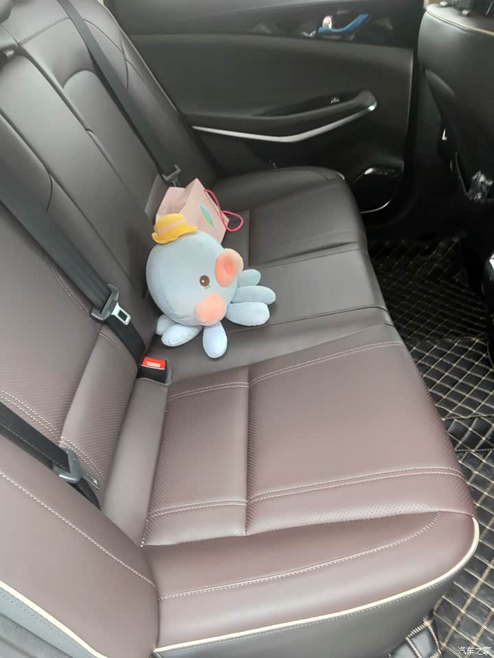 这款车的舒适度是很高的,只要里面手经常接触到地方都是采用软包皮,触感非常好。座椅都是真皮包裹,坐下去不硬也不软。给人的非常的舒适。后排空间大可以安装一儿童座椅,坐上去非常的舒服。附上照片提供大家参考一下。