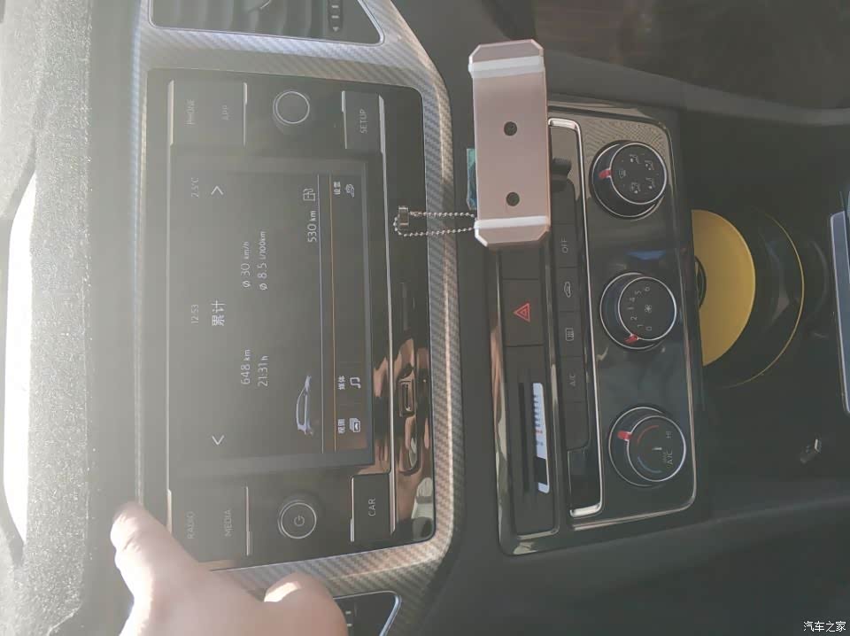 中控台上各种按键都有很醒目的灯光,很亮的同时,不刺眼,感觉温馨!手机可以直接连接这个多媒体屏幕!实用