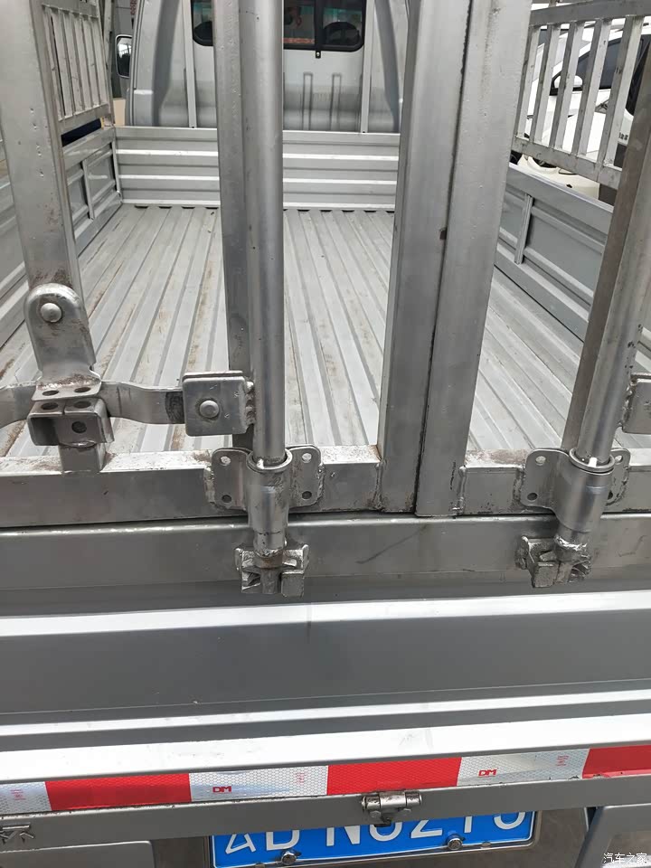 他的货箱比较长,长度的话有三米四,货箱扎实,焊接点看着比较严实。然后就是这个车子的配置比较高。带着倒车影像还有雷达。我开起来的时候安全。不用担心,倒车的时候看不到后面。我买的是一款带栏杆的车子。能装的货物比较多。平时用来拉木头或者是木板。然后在厂里面加工成梨碳。有这个长度的货箱不用担心木头长了拉不下,如果说装梨碳的话可以装100多箱,完全能满足我的需要了。
