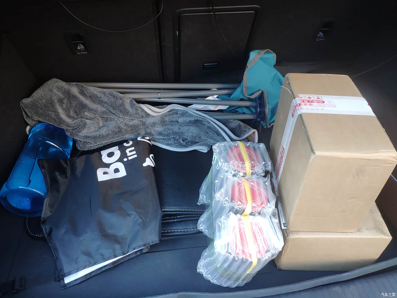 都不大,放点零碎还行,还是旅行的后备箱比较合适,可惜新车是1.8T的