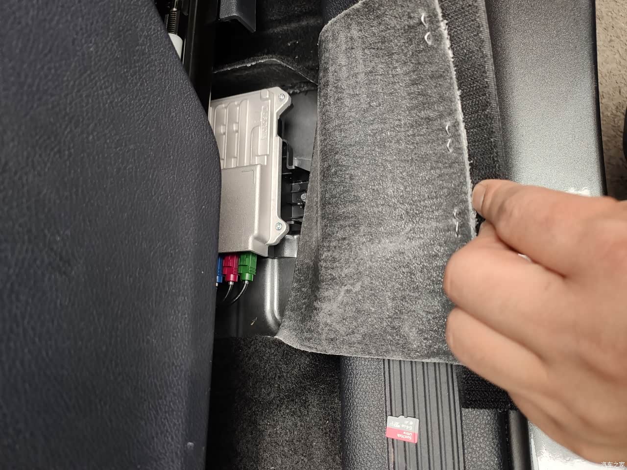 在主驾座椅下面,必须把主驾椅子调到最高最靠前勉强瘦小的手才能伸进去。不得不说设计师以前是设计保险柜的