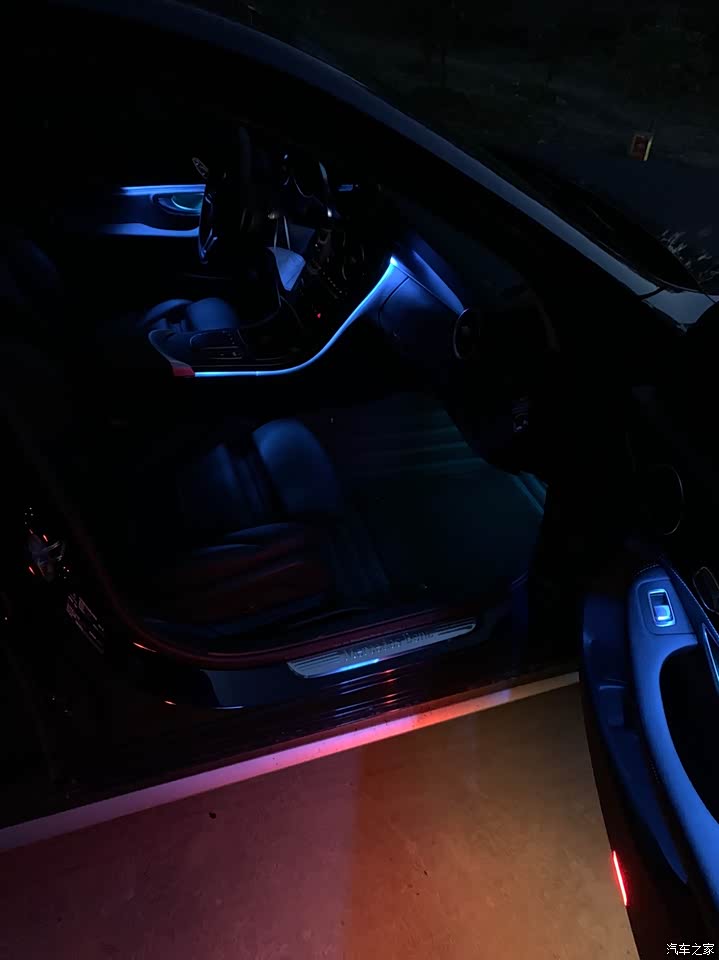 有人说没有64色氛围灯的奔驰是没有灵魂的奔驰,果断外面加装1800,效果果然一下子上去了,特别是晚上和进地库,逼格满分。前期所有颜色都试了一下,特别是网友说的东莞色确实很骚啊,但最终还是发现冰晶蓝最漂亮,已经很久没有换过颜色了。