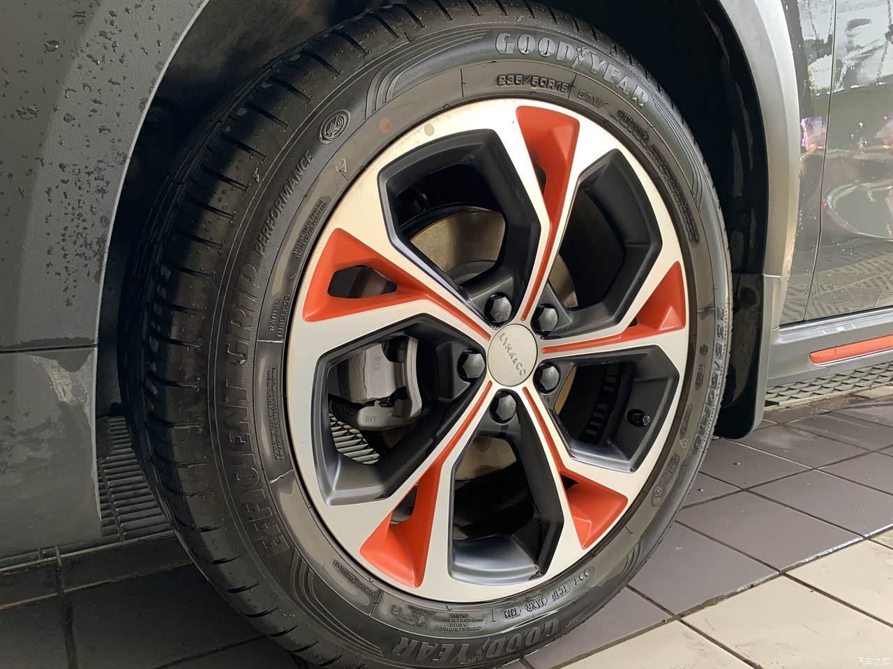 轮毂是18寸的,轮胎是固特异的,235/50/18的尺寸,非常厚道。