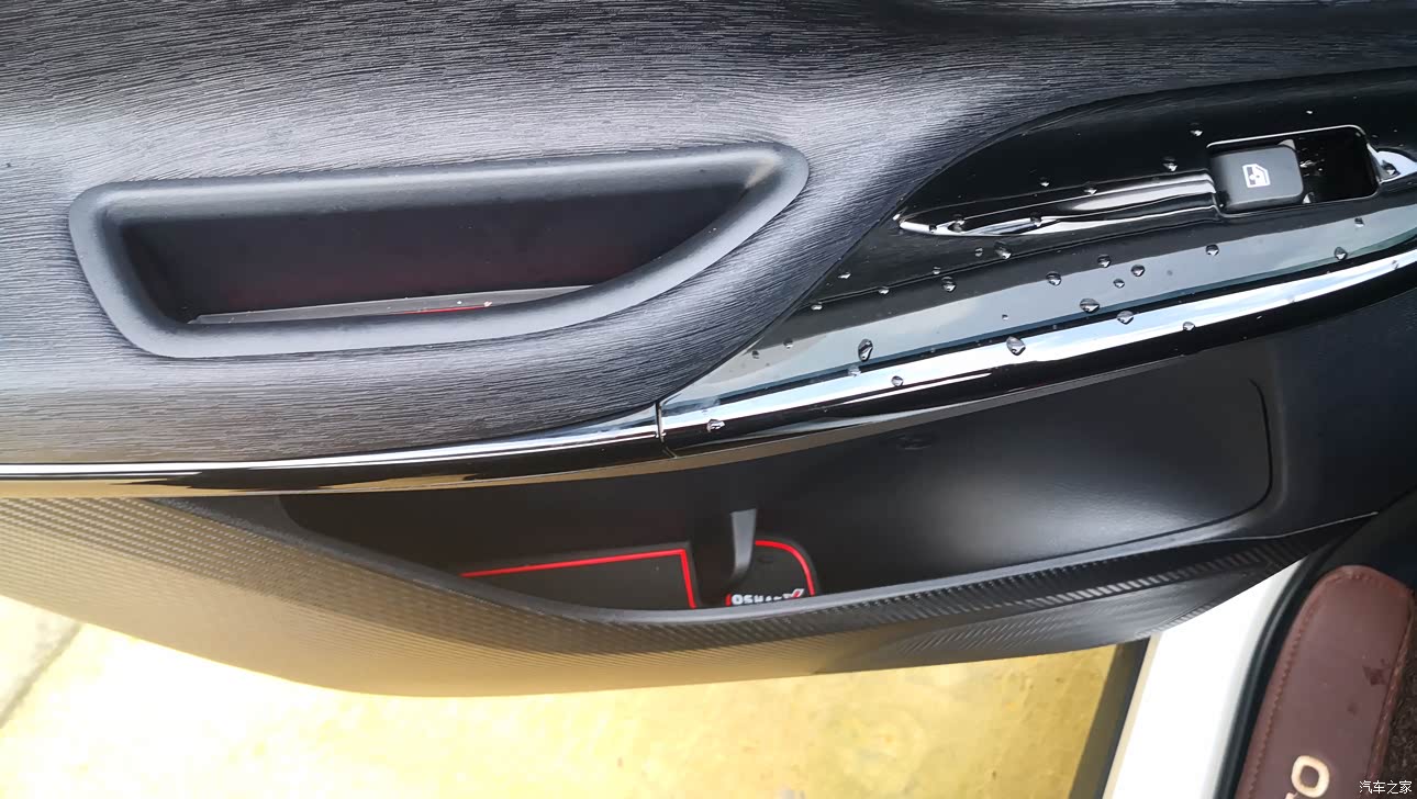 主驾驶位后排门板储物空间。(拍摄的时候下了点下雨)