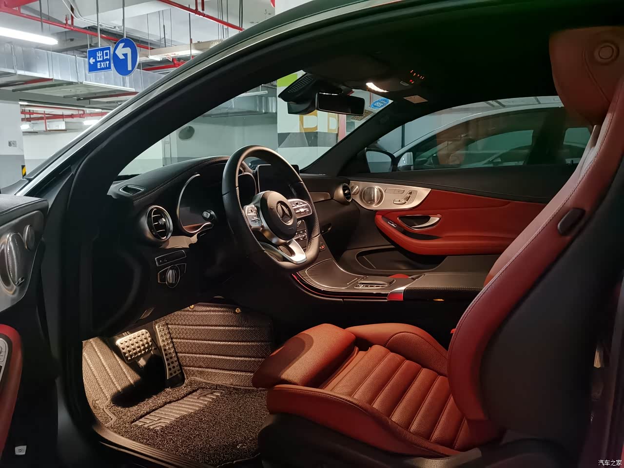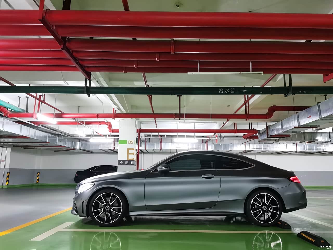 18年帮家里买了一台ATSL给爸妈用做代步,去年轮到给自己买人生第一辆车,趁着还算年轻,给自己设定了几个选车标准:1. 双门四座,是个性也是平衡(也可以说是妥协),觉得在30岁的时候趁青春未完全溜走,自己也并未成家,能有机会装个逼还是很重要的,更何况已给家里购置四门车,总该让我自己爽一把吧,楼主本人平时跟父母不在一个城市,我一人在深圳工作生活,所以两门车绝对够用2. 颜值内饰都很重要,缺一不可:外观给别人看的,内饰给自己享受的,都很重要3. 动力至少2.0T:如果花个四五十万买的轿跑动力还不如家里二十多万的ATSL,那我买它干嘛?4. 品牌:重点考虑BBA最终入围前三甲的是:奔驰c coupe、宝马4、以及野马mustang,简单分析了一下c300 coupe优势:外观颜值、内饰精致、品牌效益劣势:操控一般BMW 430优势:宝马操控确实更强劣势:内饰质感不如奔驰、即将大换代野马2.0T(这辆我父母特别喜欢,估计也是因为外观)优势:外观霸气运动、价格低、操控劣势:内饰粗糙、品牌效益不如BBA综合考量,由于是人生第一辆车,对操控要求并不高,况且虽然不及宝马的操控,但奔驰也差不到哪去吧,但颜值这回事,不喜欢就是不喜欢,改变不了的,外加颜色buff,完全不纠结了当时4s店在3月就帮我核查信息,查到即将有辆c300 coupe哑光灰生产,预计6、7月到店,得知消息后考虑了2小时便提交订金开启漫长的等待,7月份终于等到它,落地52(哑光灰要加价1.5w)