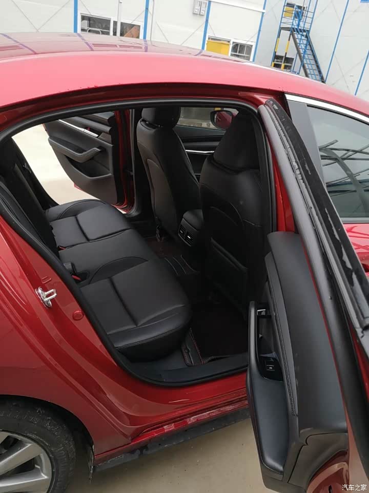 最满意的是颜色和外观,水晶魂动红加上运动型的车身设计,看上去优雅大气,车身长度4662,看上去像B级车,内饰的工艺也很好,多数都是真皮的材质,看上去高端一点,功能比较齐全,有led大灯,倒车影像,天窗,真皮座椅,导航,定速巡航等等,有一个功能是最爱的,就是门把手上有只能无钥匙进入,和我之前看过的其他车子不同,它是直接感应的,很棒。