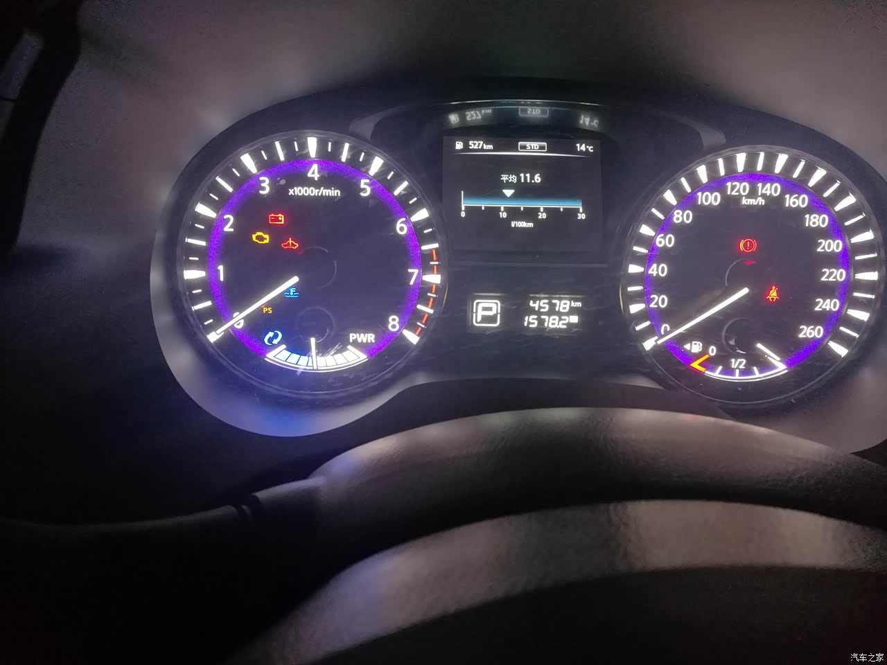 235马力330牛米对一台家用车来说足够了,我一般就是上下班接送小孩用,往往绿灯亮起稍微轻点油门车就窜了出去,比其他车都快,也比我以前1.8T的帕萨特快多了。中后段加速动力也浑厚稳定,普通模式和ECO模式各使用了一半时间,运动模式没开过,感觉ECO模式市区用也足够了。到现在没上过高速,都在市区开,所以高速路段暂时不发表。CVT变速箱不但让车加速平顺线性,也进一步降低了油耗。