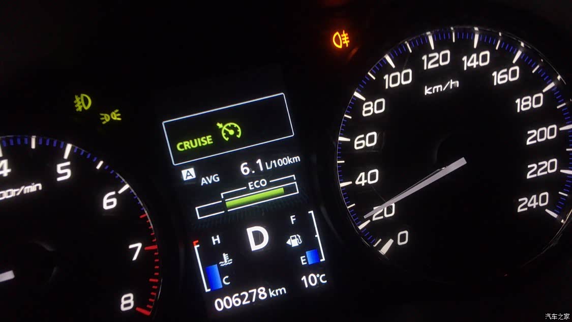 在市区的时候因为红灯多,油耗会达到10到11,在高速上是6.8。现在平均油耗是8。