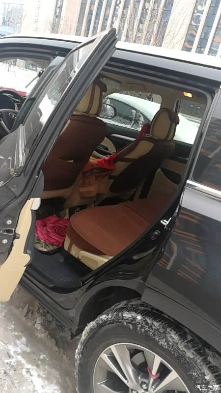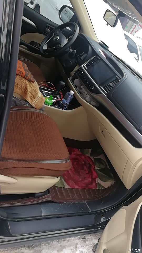 安装了棕色的座椅套,原来的织物座椅不耐脏。