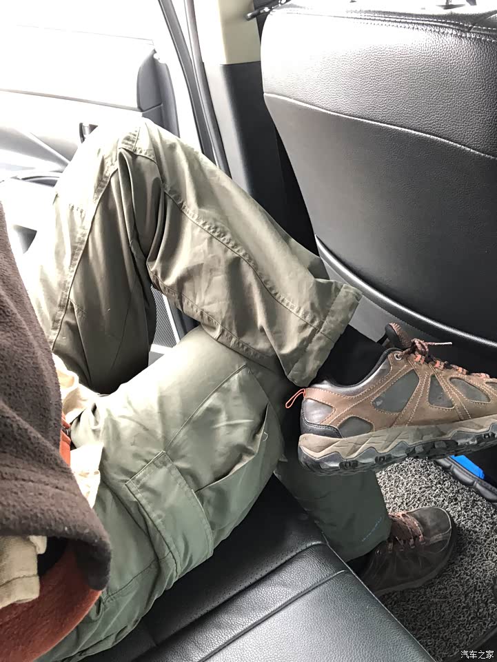 前排位置调合适后,坐到第二排,翘起二郎腿都没问题。
