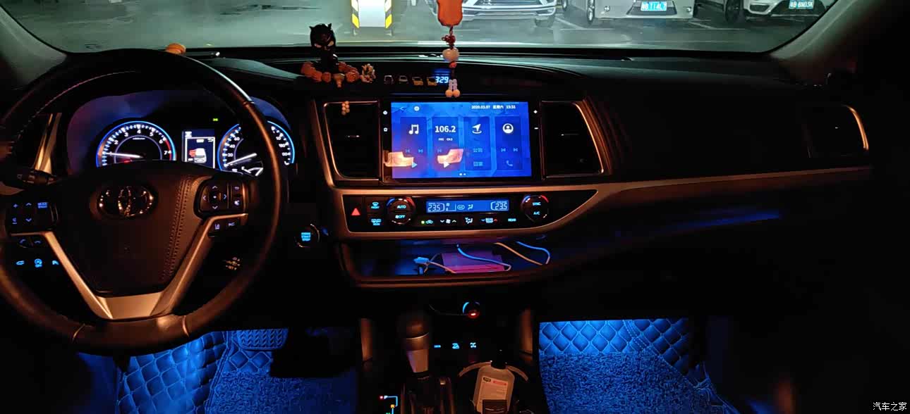 淡蓝色的车内氛围灯搭配车内音乐给能一种宁静舒适的感觉。经常在不开车的时候也会坐在车上听听音乐,也是一件很心情愉快的事情。