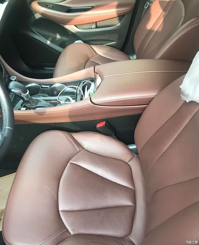 买这款车有一部分原因是因为昂科威的内饰好看,棕色的座椅设计看上去非常的高端大气上档次,因为之前的黑色内饰看多了,猛然看到这样的内饰真的很吸引我,家里人说买个米内的,说偏白的内饰好看,被我说米色的不耐脏,有小孩不好打理给糊弄过去了。