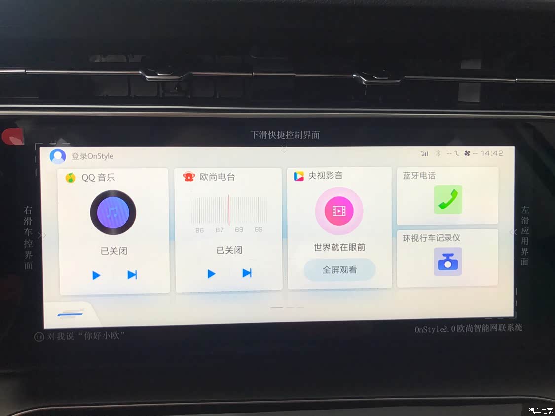 这款车的中空屏清晰度不错,看电视可以用央视影音,听音乐可以用QQ音乐,很多功能都是可以语音控制开启de