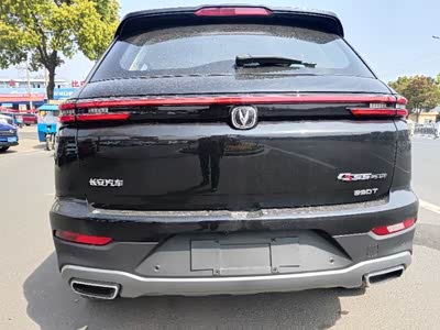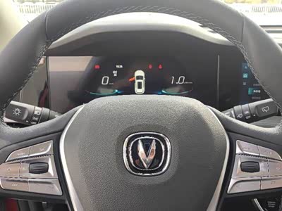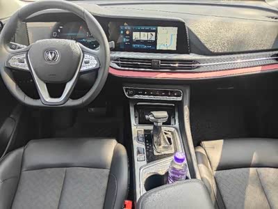 CS55plus环抱式的座舱设计,整体布局采用熏黑色调为主,搭配精致的红色装饰亮条及小面积的红色运动包围,双10.25英寸双联屏设计,抛弃了传统的炮筒式中控显示屏,1920*720高分辨率的双联屏设计重新定义车内仪表组合,十分前卫;大屏向驾驶者方向倾斜10°,更轻松方便的获取信息;CS55plus抛弃过去传统的圆形方向盘设计,采用D型跑车式多功能方向盘,运动感十足。游艇式换挡手柄,尽显奢华,搭配软质皮革包裹,不仅美观,而且手感舒适,让你从此爱不释手。