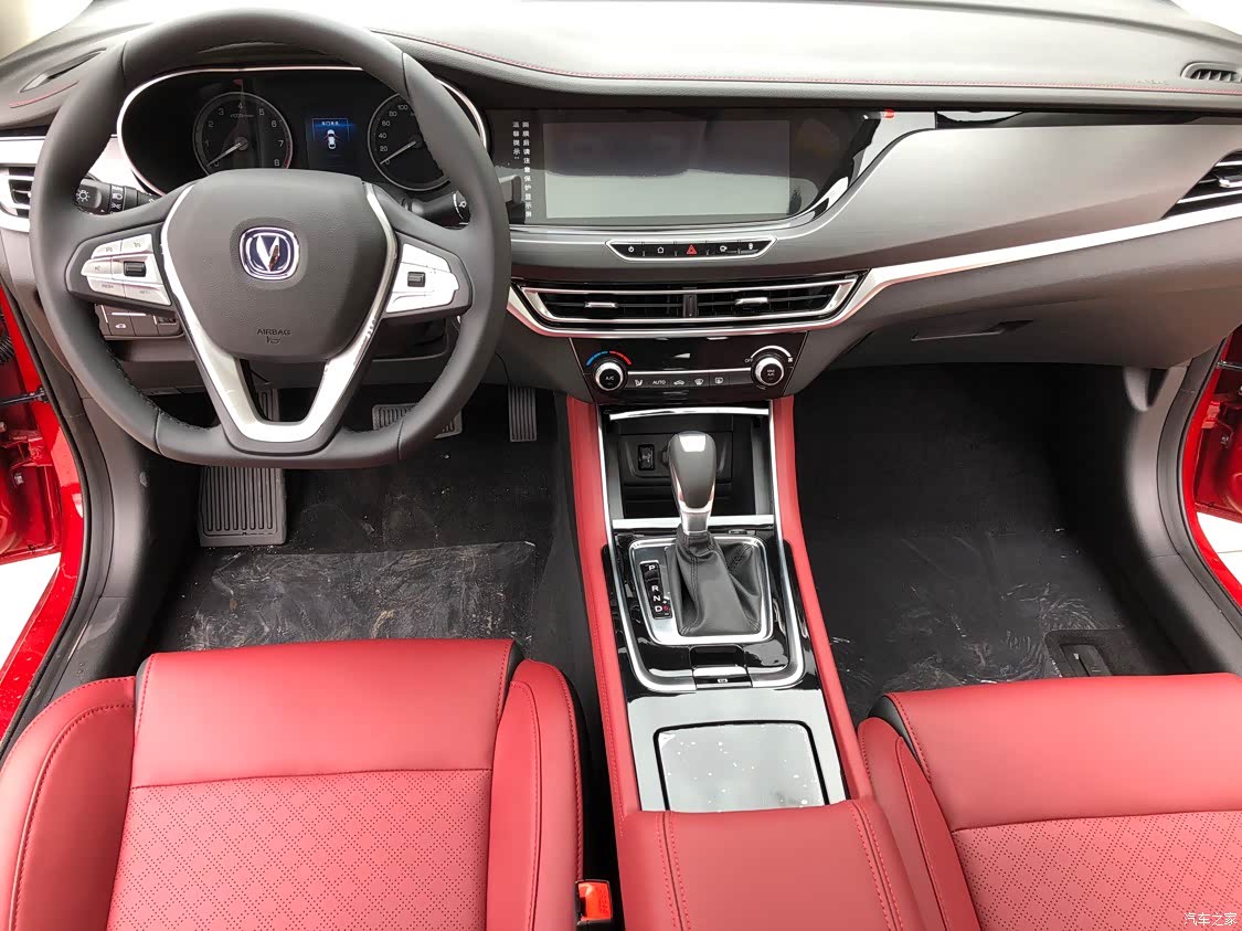 内饰其实很简单,黑色为主,加了一点红色的皮质做装饰,座椅是红色的,很时尚,整个的一个内饰还是很简单的,很大气。