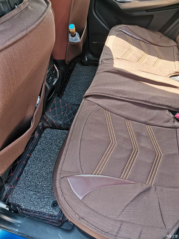 这个空间对得起这个价格,只要不是很胖,一米八五也能放的下三个,千万不要买前排的这种座套,太挤了,本来座椅就设计的正好,加上座套就挤人。 前排座椅调好了,后排的空间