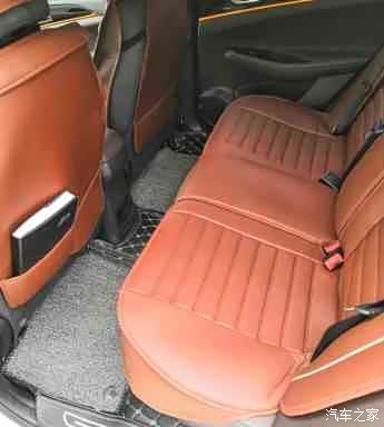 内饰的整体做工还是挺不错的,设计风格也是简约时尚型的仪表台,门石板上面都有橙色的线条点缀,看起来还是非常运动的。但是后排没有USB接口,算是一个小小的缺点。