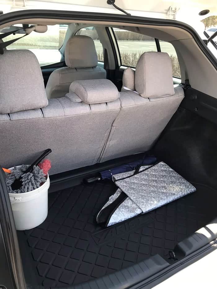前排绝对够大,后排放倒,空间相当大,这也是2箱车的好处即使不放倒后排,储物空间也很宽敞