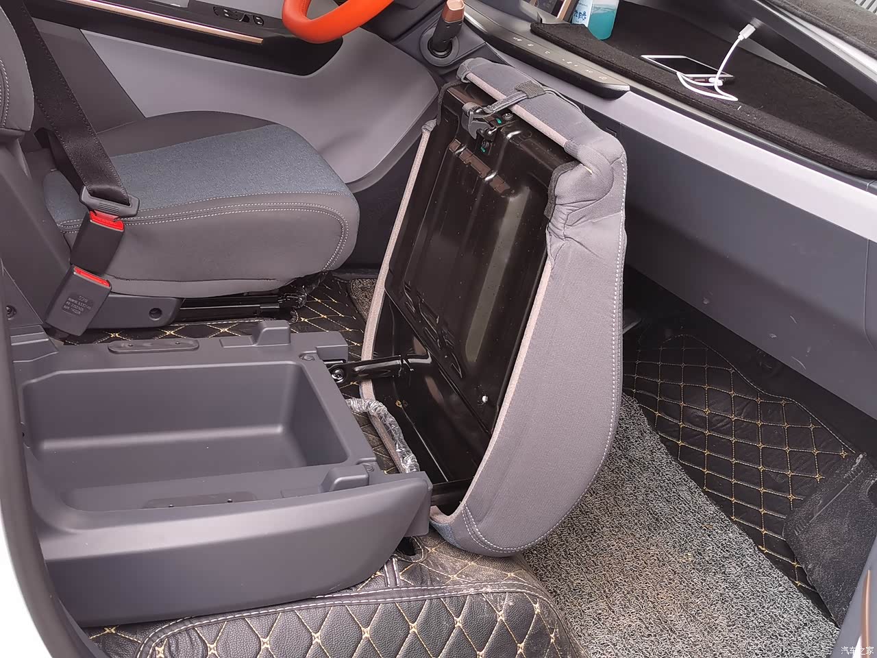 副驾驶座椅可前后调节,靠背可调,可以在车里休息,并且座椅上翻会有额外的储物空间,这个设计挺好