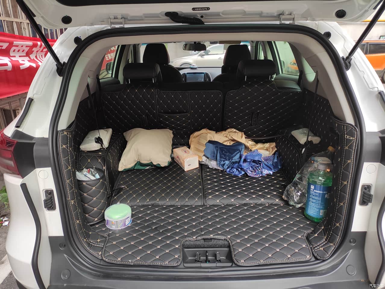 买的六座,放倒第三排空间巨大,不过第三排使用的话估计就一箱矿泉水的纵深