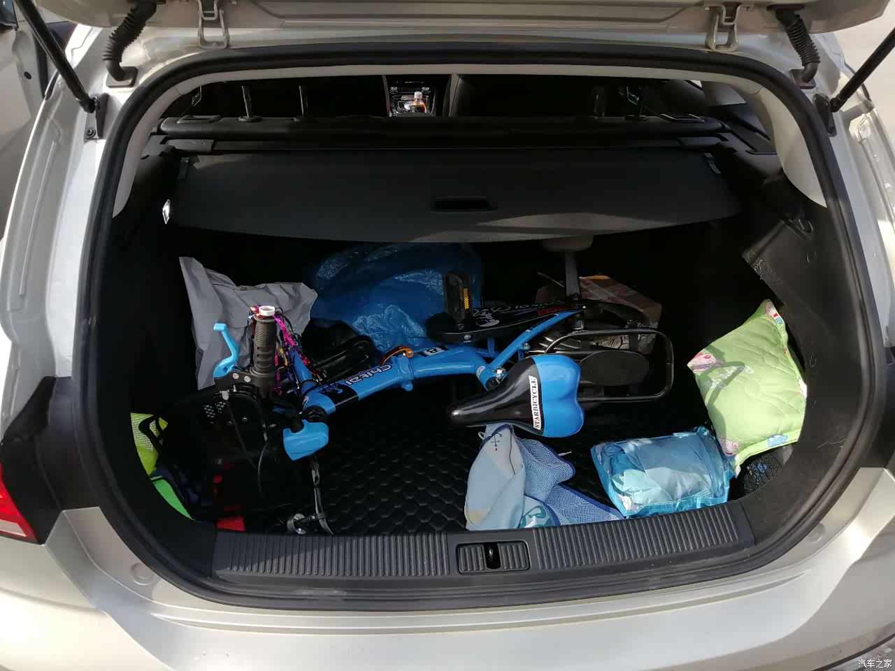 整齐的后备箱,可以很轻松的放下儿子的自行车,无需折叠,横放竖放都没问题。