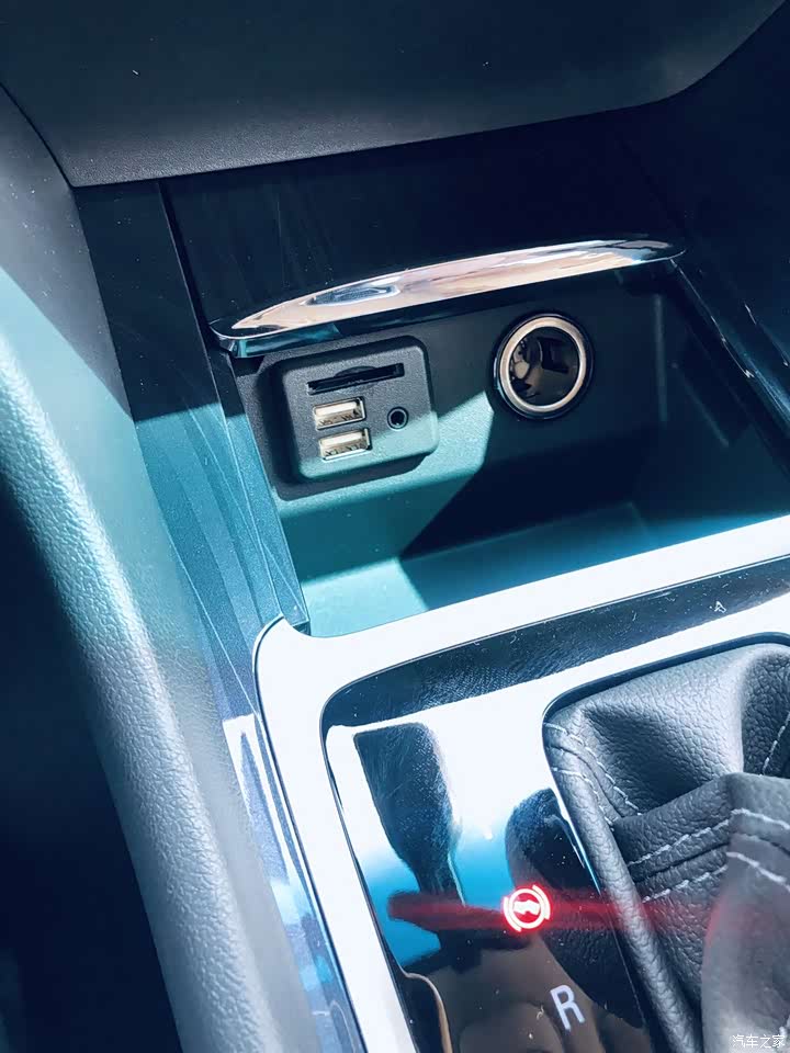 内置方面最满意的就是这个超级深的杯架啦,整个储物盒的深度真的是可以把水杯完全放进去,而且还有个小机关可以吧储物格进行一个隔断,还有固定杯子的杯托,真的是很不错,前排还有2个usb接口和一个220v的电源也挺实用的。