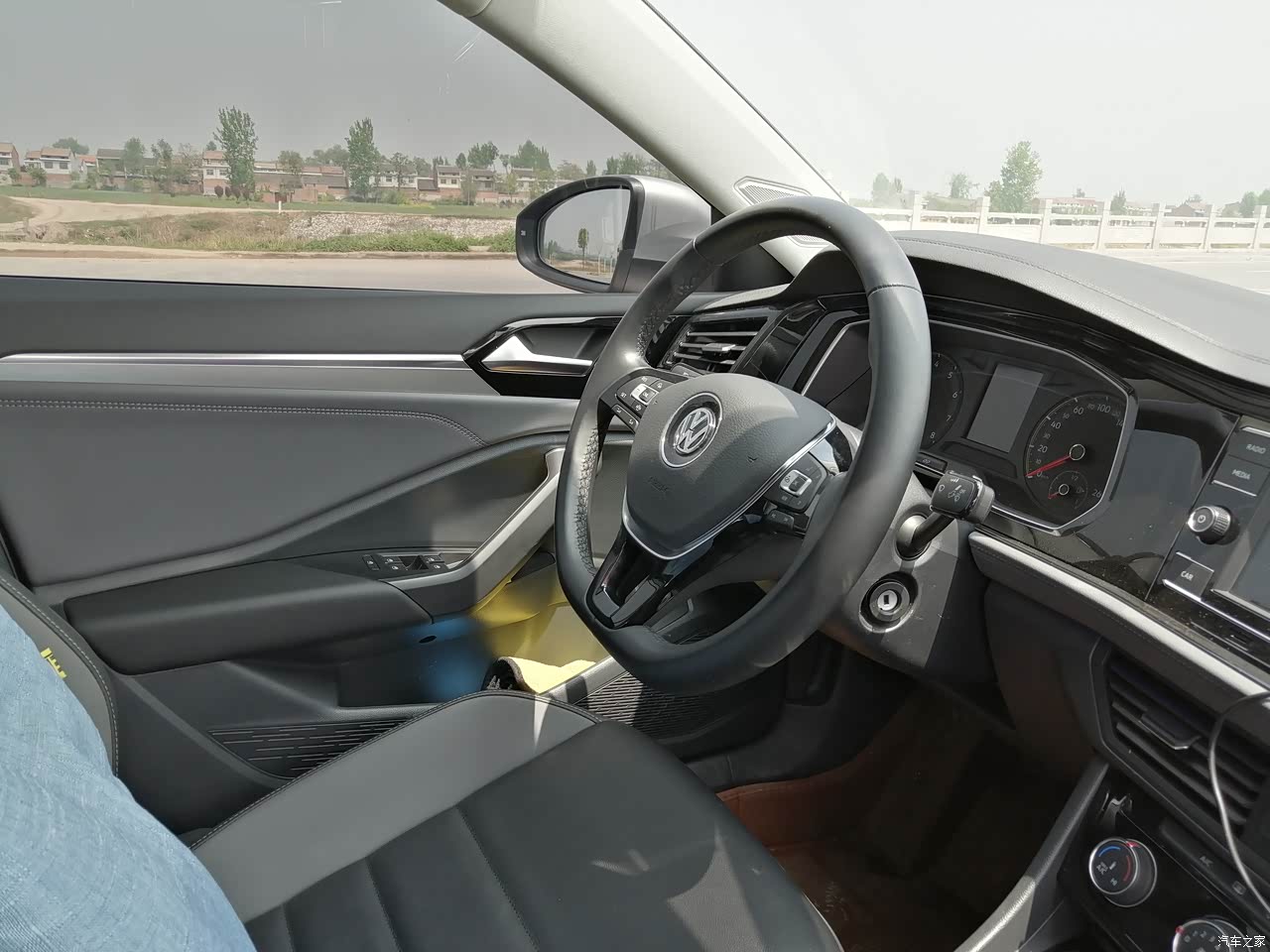 溏塑中控,真皮座椅,真皮方向盘,多功能方向盘。内饰风格男性化,大众大众老一套但有新亮点。十色氛围灯需要在中控屏进行设置,开始不知道,以为是低配。手机互联感觉很实用,真正用了又觉得鸡肋——手机高德导航映射到中控屏后岔路的语音提示没有了,这是个大问题。听歌的话比蓝牙连接效果好一点,真想换一套丹拿音响,看好的那一套5000以上。有机会再弄吧!异味有一点,但是不大。气温升高就有点明显,这个没问题。