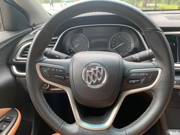 英朗的方向盘做工精细,握上去比较有质感。但是开起来,我觉得美系车还是比日系车的沉一些,可能这也是男生说的比较有操控感觉吧,我也是在能接受的范围。然后英朗方向盘也是多功能的,上面有自动巡航功能,音乐更换,声量调节等等,让我们在路上行驶的时候操作更方便安全。