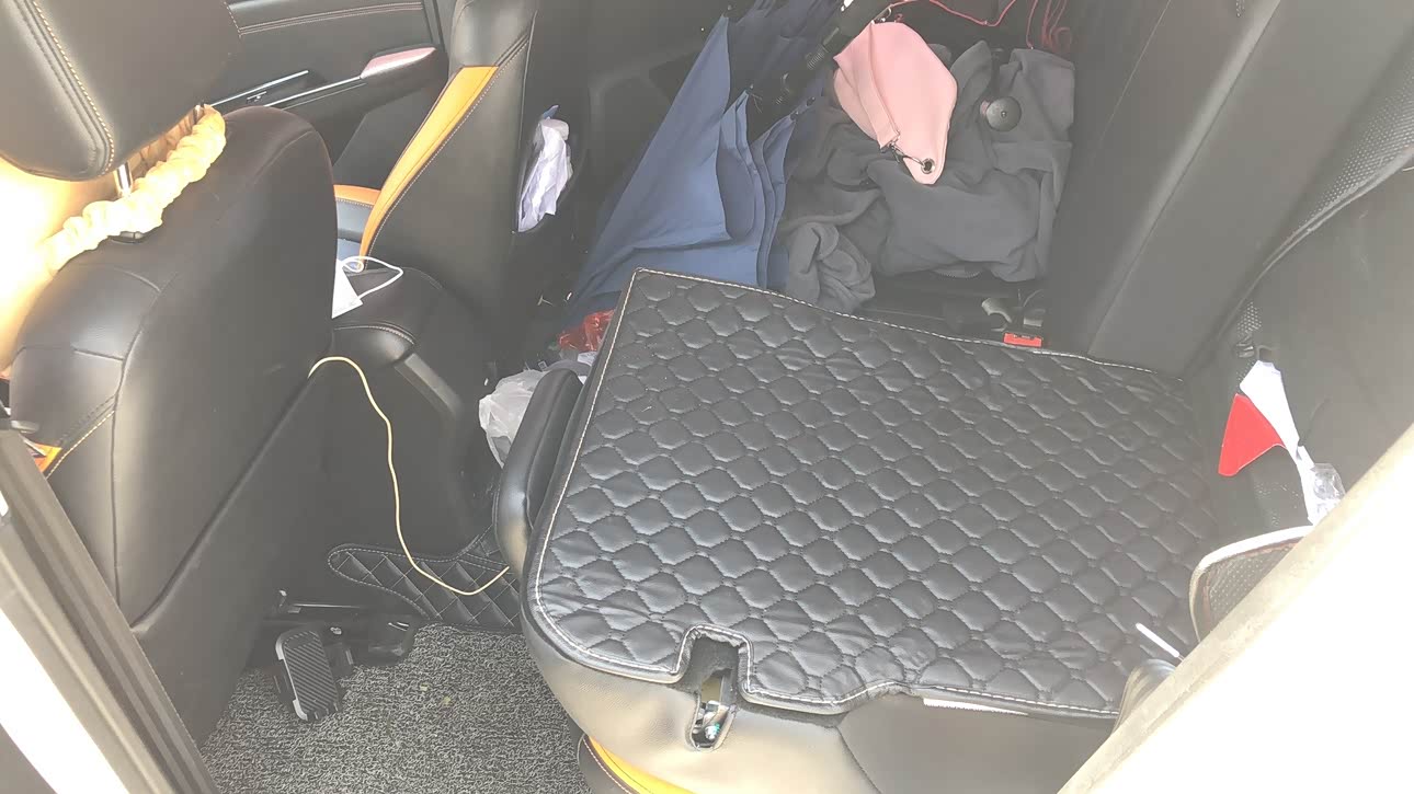 这样,两种方式不同的,如果要拉一米八的那种长长的物件,比如杆子什么的,就把副驾驶放下来 空间就够了