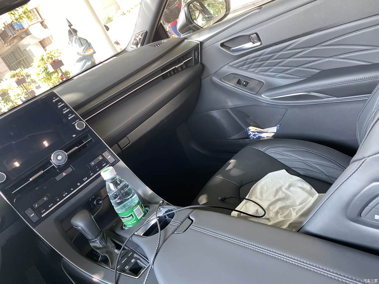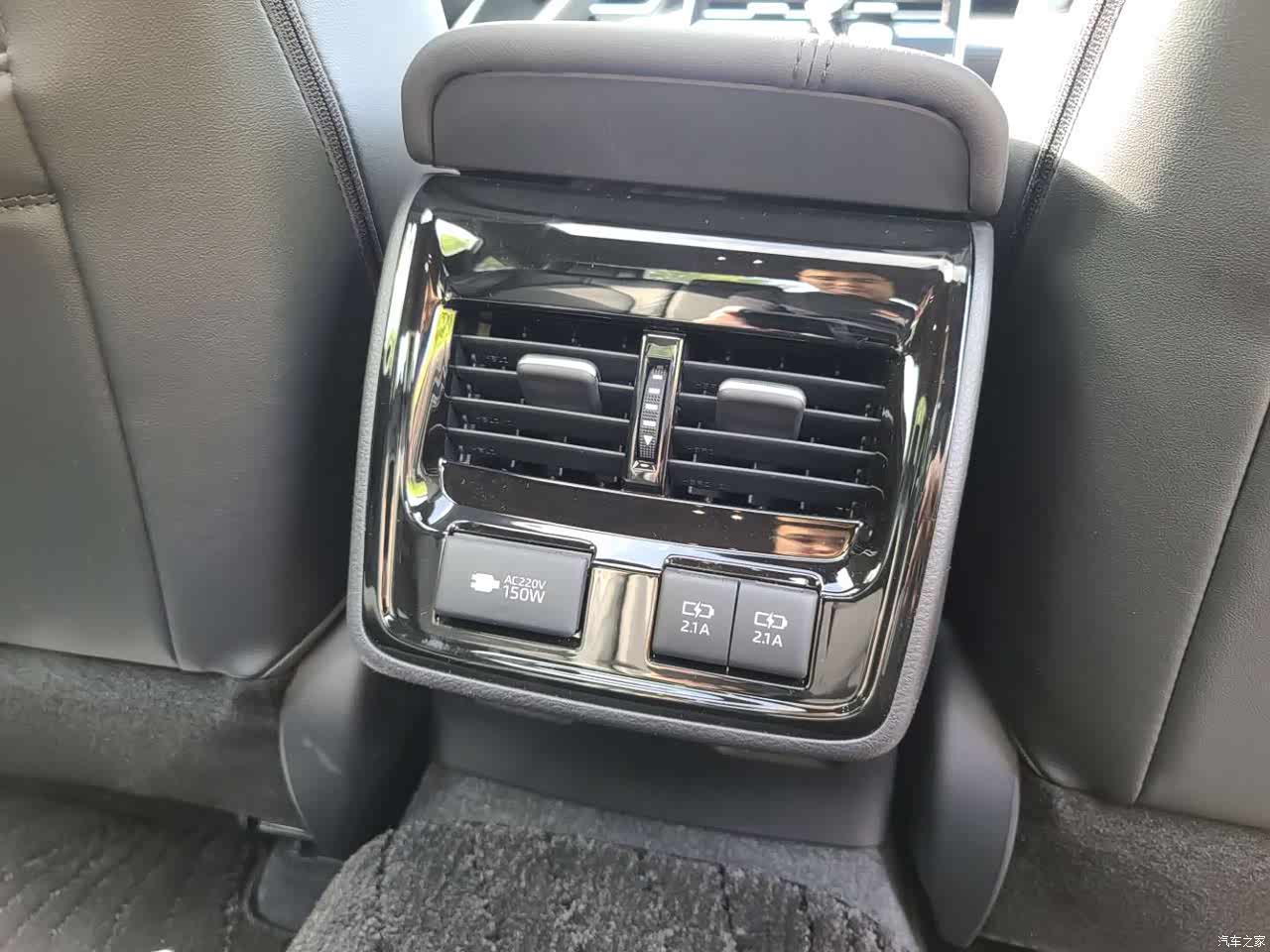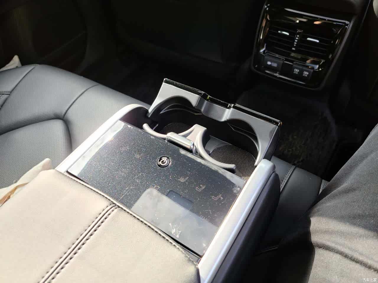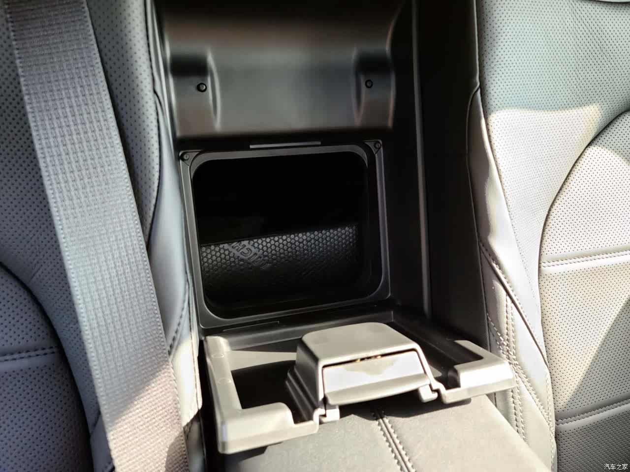 空调控制区域下面是两层空间,下层能放下一包抽纸还有富余,盖上盖板,上层也能放很多东西,还有电源给手机充电,杯架在右边区域,开车的时候也舒服很多,有个异形杯架,放iphone刚刚好,放带壳的三星S20U就放不下了。扶手箱巨大,能放很多东西,还有个小盒子,能拿起来,不过有点浅,放眼镜高度刚好合适。说到眼镜,居然没有眼镜盒,差评,不过很多车也没保留眼镜盒位置的,后排中间扶手箱那块如果可以打开就好了,多出一个空间,后排放东西的地方确实少,只有两侧车门板位置跟中央扶手的杯架,不过还好有个小洞能通车尾箱。