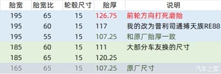 特意做了个换胎对比表。供车友参考。 个人建议195/60/15和195/55/15