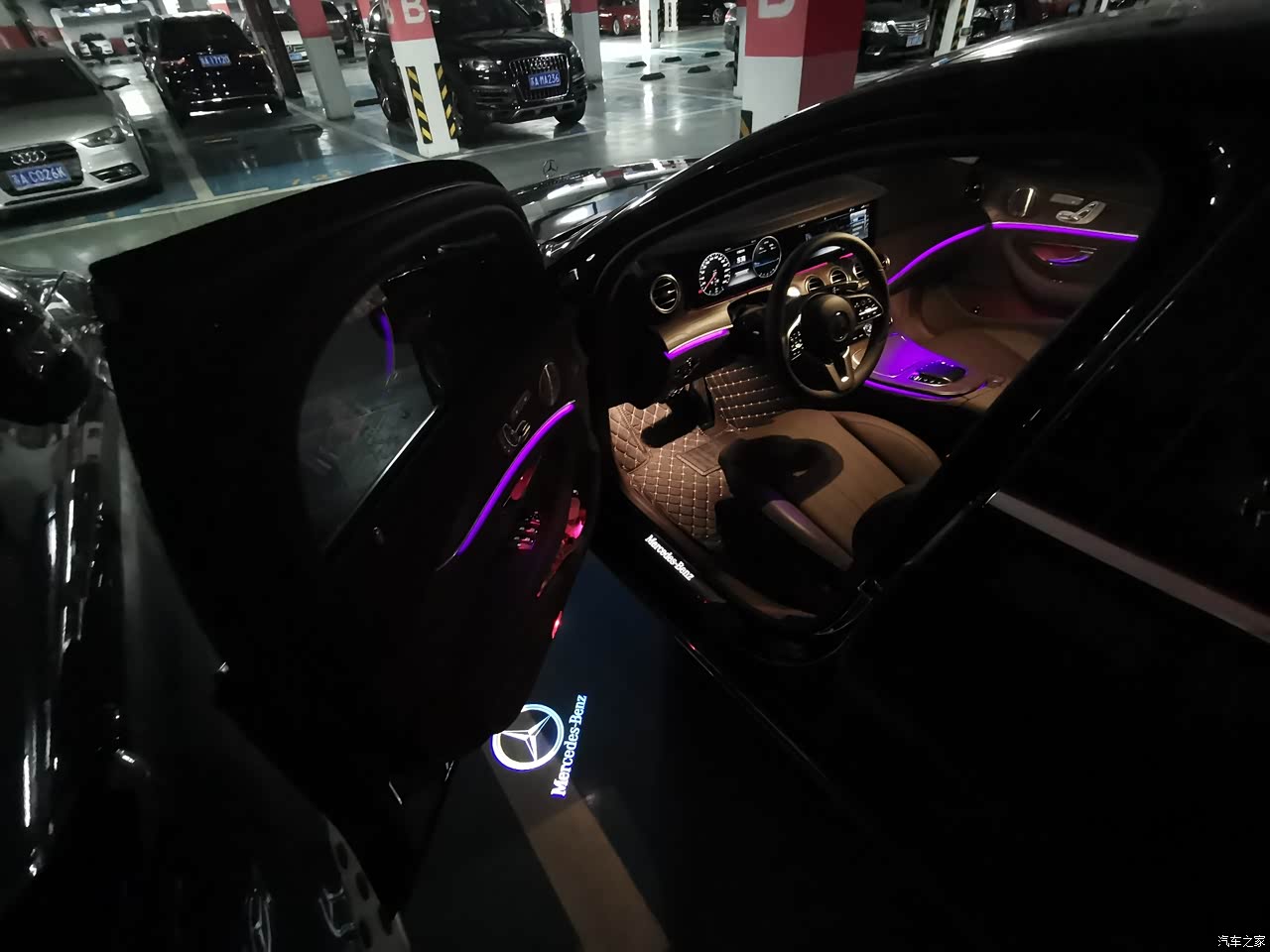 本来想买530Le,5系的地盘,悬挂,操控以及初段的提速确实比奔驰e好,无奈老婆喜欢奔驰e的内饰,氛围灯