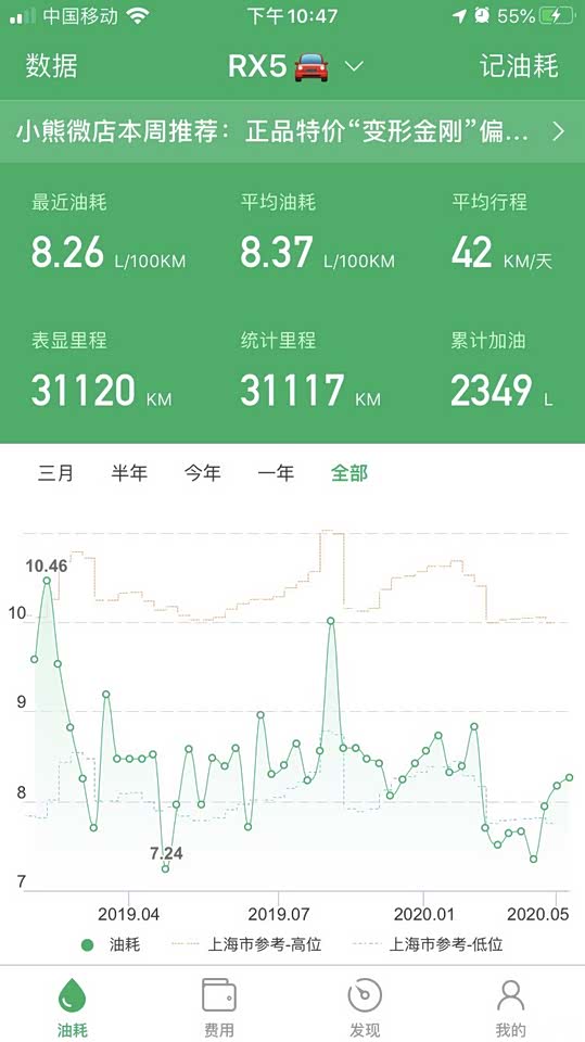 三万公里平均油耗8.37L/100KM