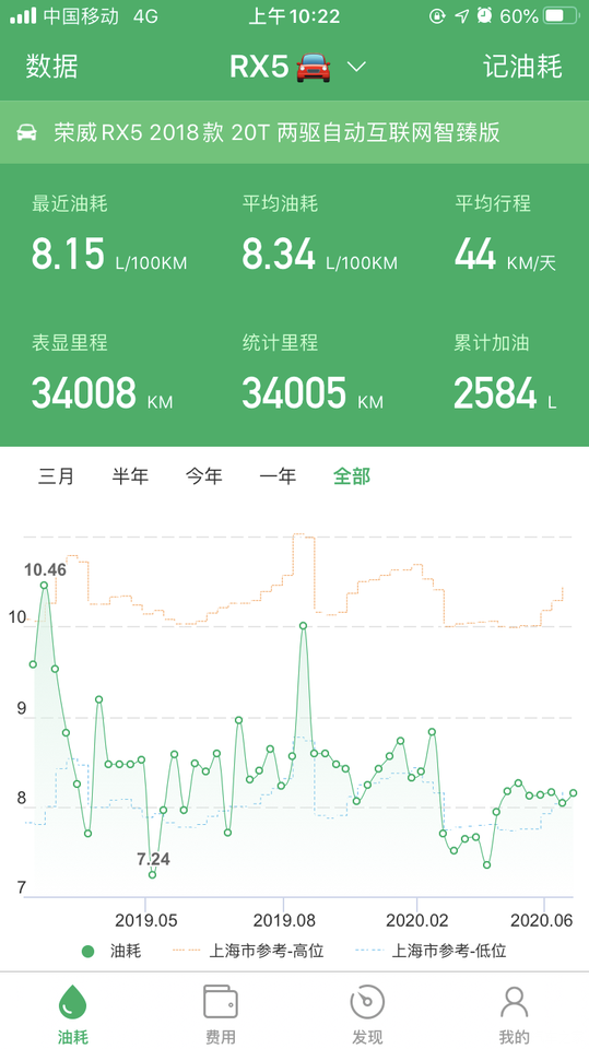 作为一辆1.5T的自动挡,我的三万公里综合油耗实际是8.37L/100KM,高速油耗比较低,双离合的优势,最低跑过5.4,上图