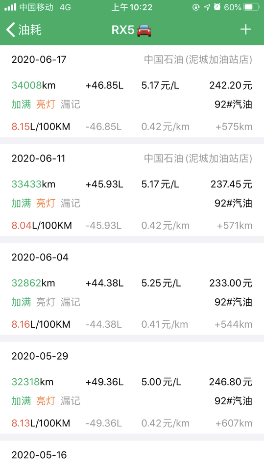 当时高速跑了40多公里,速度80-100码最省油